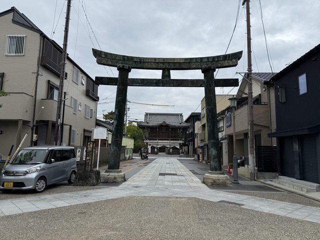 首先是很特別的銅鳥居,再往前走是一座氣派的門樓,又過一個鳥居後是有兩個