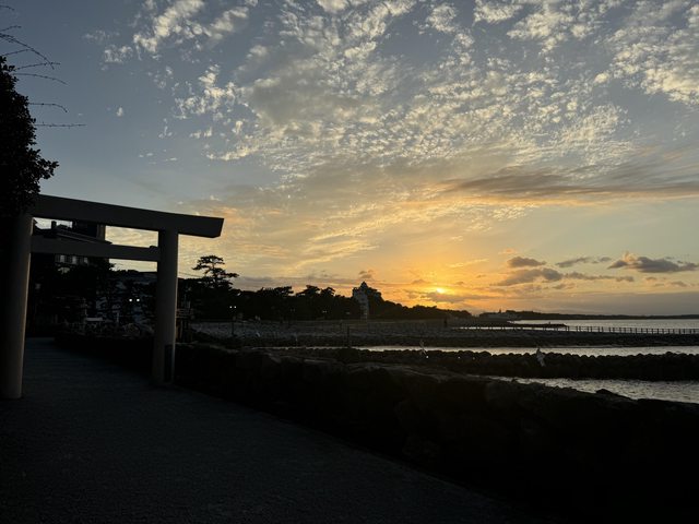 息,我們只能拉著行李走,一路上都沒什麼人,直到接近二見興玉神社的海邊堤防才有