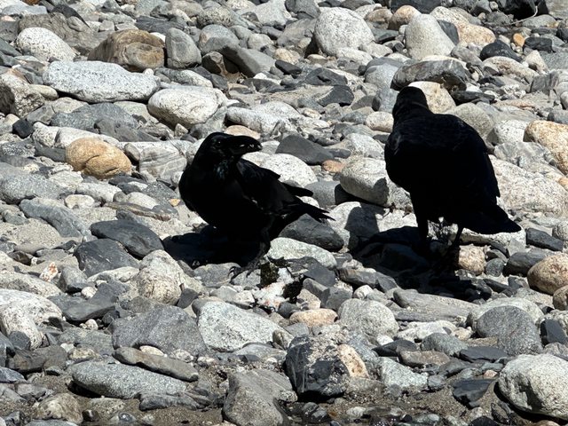 用餐到一半肩膀被撞了一下以為是有其他遊客跌倒,結果是烏鴉來搶飯糰
