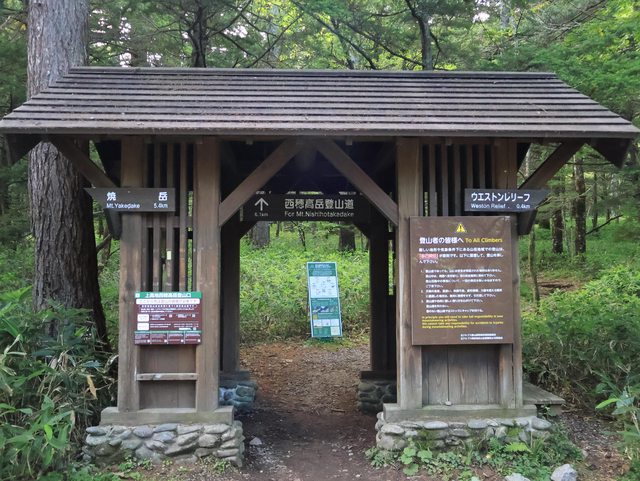 途中經過西穗高岳登山道入口,需要有專業登山裝備及登山計畫申請的樣子