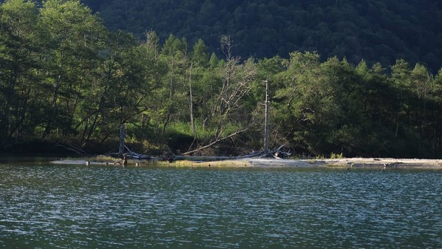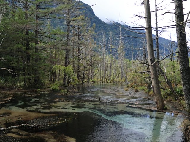 抵達上高地巴士總站大約是13:30左右,途中經過大正池時司機會放慢車速並介紹風景