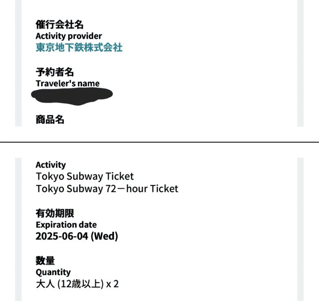 標題[讓售] 東京 72 小時地鐵乘車券 2 張