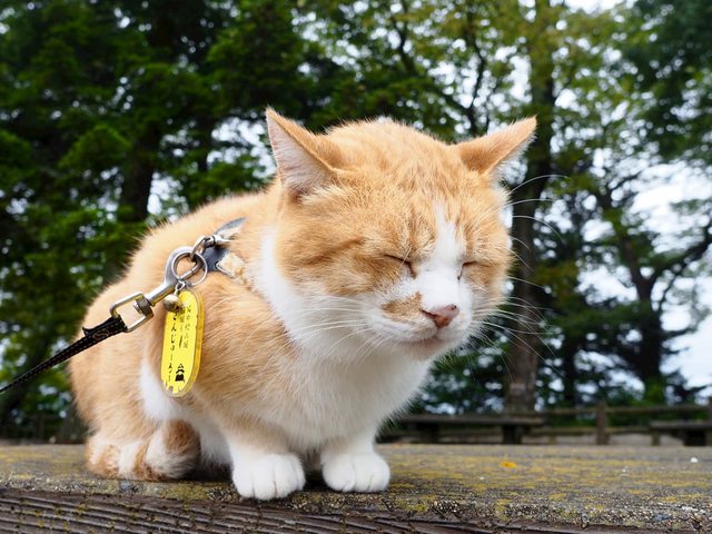 到了天守前的廣場,著名的貓城主三十郎已經出來巡視,即使被遊客圍繞依舊氣定神閒。
