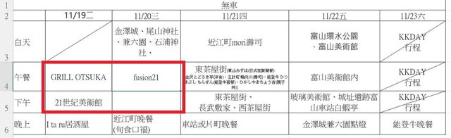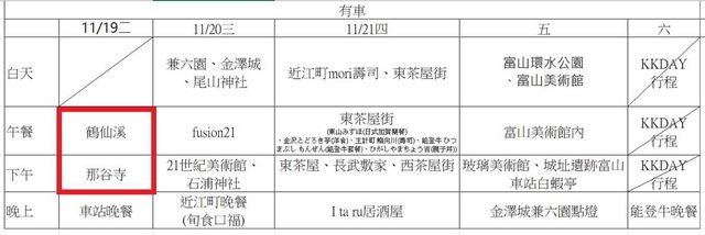 Q4.因所有行程皆住金澤,考量來回車程時間故11/22的行程