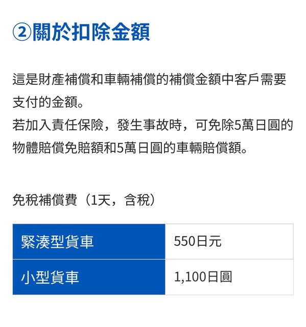→ nodapuririn : 車損自付上限2萬+營業損失1萬10/18 14:12