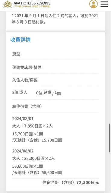 台幣一晚分別9000的8月2、3號
