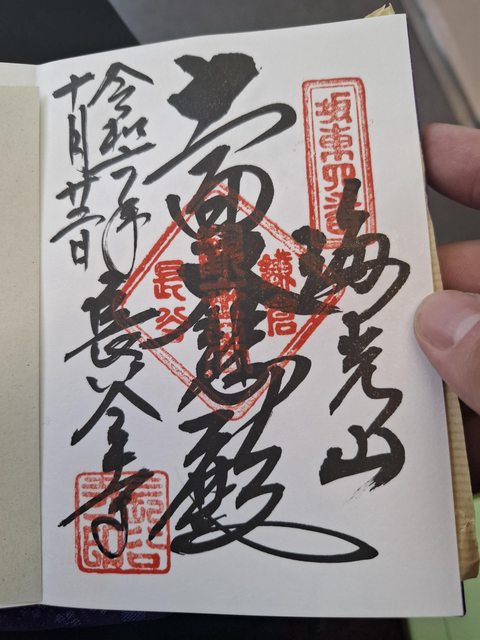 看地圖就長谷寺隔壁,但其實高低差所以要繞一小圈,神社區域內不能拍照就沒拍了,只有拍一張鐵軌+神社外觀,另外,御靈神社御朱印¥700,不過不用拜觀料,加起來也還好。