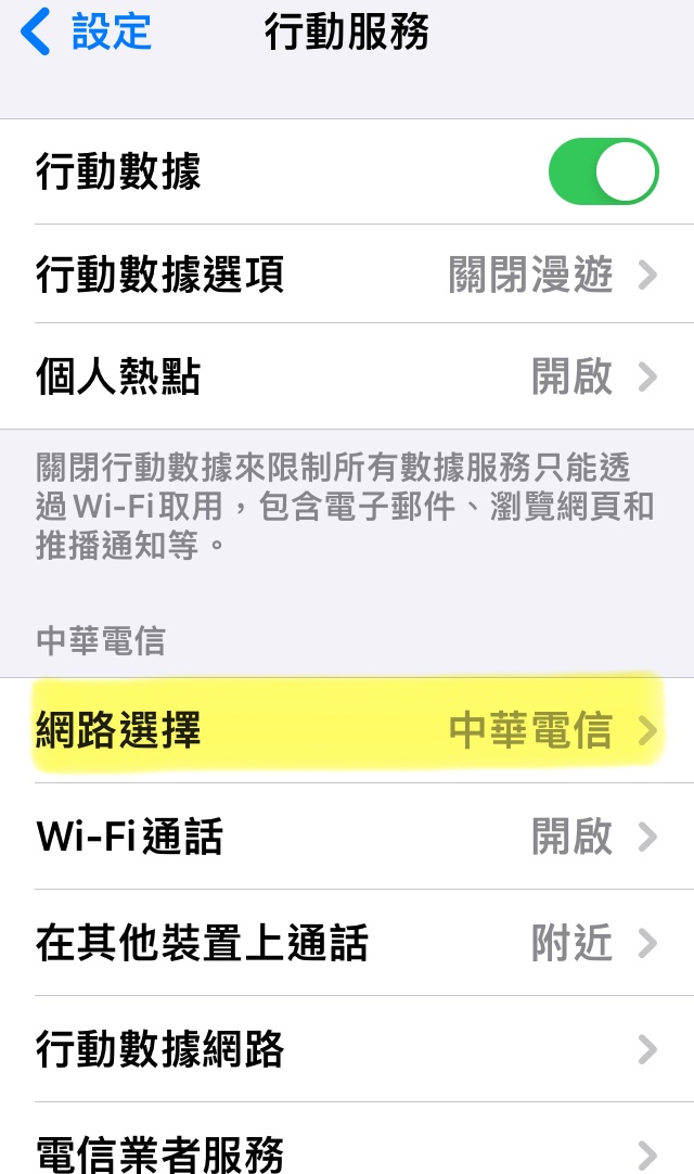 → Kakeron : 手動」選擇電信業者,ios預設是自動一定要改掉,不10/23 14:28