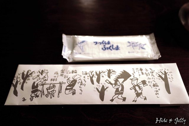 ,先送上來的筷套,相當有特色,是南会津地區的林業從業人員,與輪箱飯的場景繪圖,