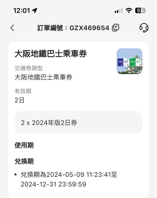 5. 交易方式: 匯款/為QR code憑證兌換,可至大阪關西機場或車站櫃檯取票