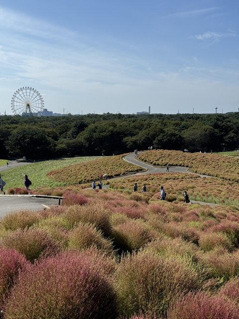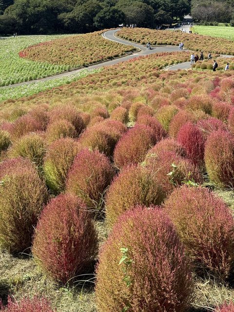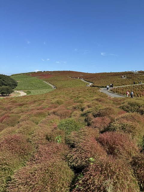 車前往),因為非假日且還不是波波草全紅的時候人不算很多,西口入園走大約15分鐘可
