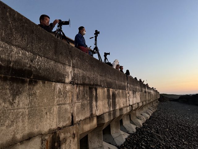 日出時間是5:40左右,我大約5點多出旅館走到旁邊的堤防旁等待,後來有走到沙灘上,
