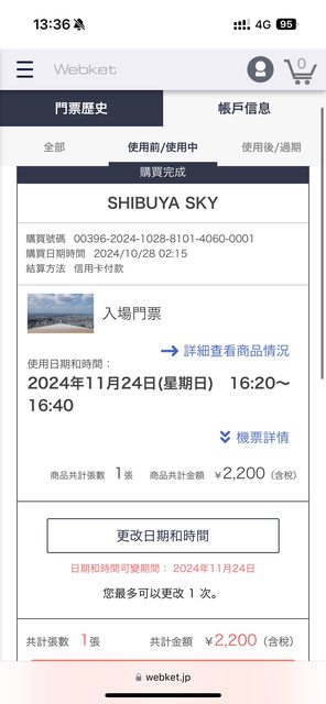 標題[讓售] 202041124 shibuya sky 門票 * 1 (16:20
