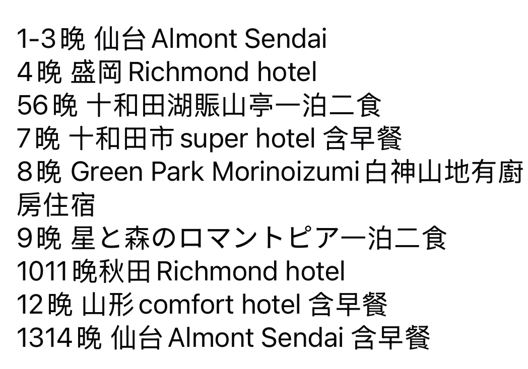 → ocean1202 : 住宿地點依序是這些 11/05 21:07