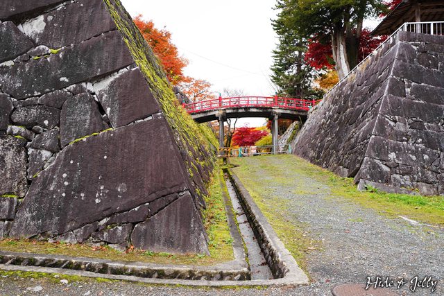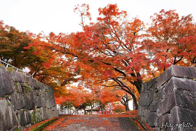 本丸東側往三之丸的方向,有著本丸門與脇櫓的石垣,也是本丸最有古城楓紅之姿的角度