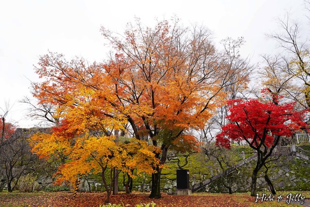 對比剛剛一整片冬眠櫻花樹,二之丸西側到處可見楓紅。