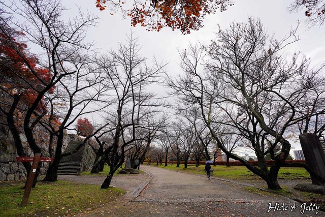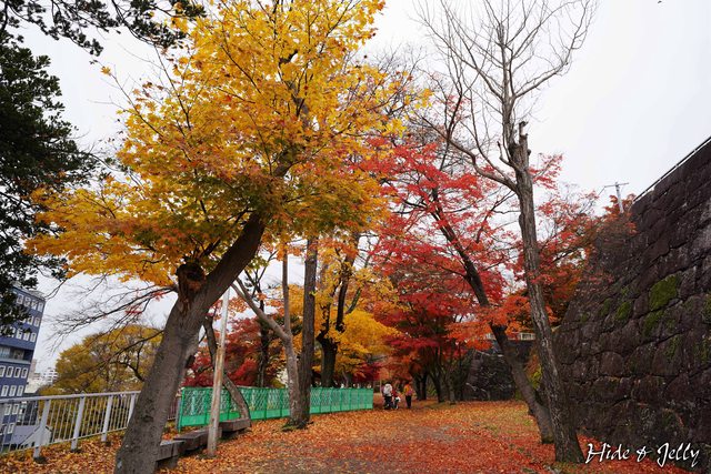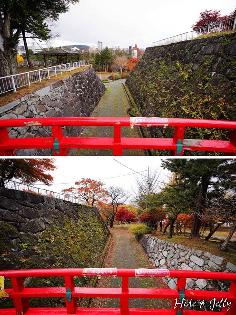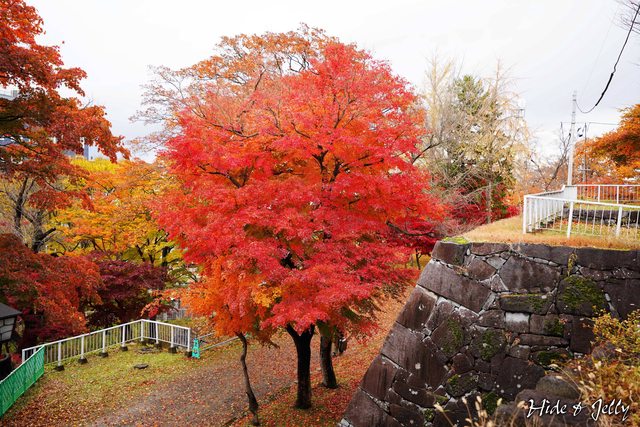 原本以為盛岡城都是櫻花,但走到二之丸西側,馬上看到一排紅的橘的楓樹在迎接我們。