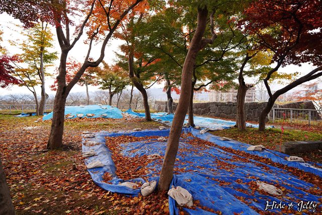 雖然在本丸內也看到不少因為維修準備而鋪起的藍色帆布,但絕對不減楓紅的美。