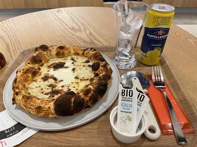 我點的就招牌的藍起司披薩,給的蜂蜜包也很貼心的幫你先撕開來了