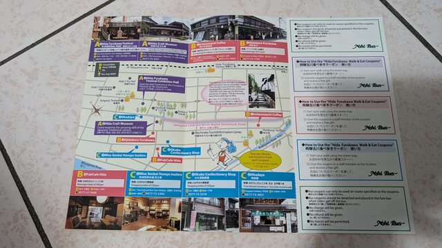 票中包含高山<==>飛驒古川來回巴士車票及A/B/C三組邊走邊吃酷碰券