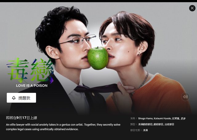標題[情報] NETFLIX 9/17上架 毒戀