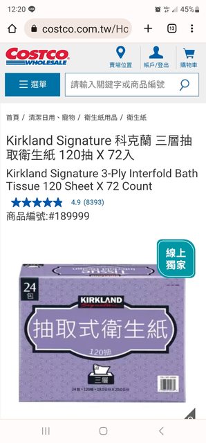 欲換物品:好市多 Kirkland Signature 科克蘭 三層抽取衛生紙 120抽 x 1串 (價值約4
