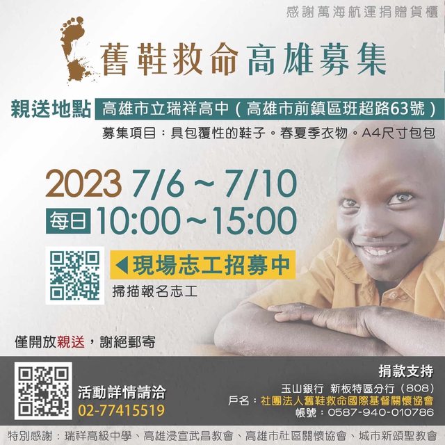 標題[徵求] 徵求 會參加「舊鞋救命」活動的鄉民