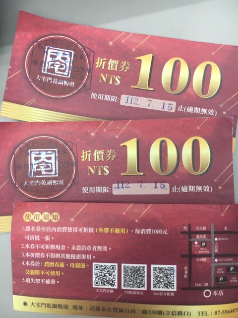 標題[贈送] 大宅門干鍋鴨頭折價券