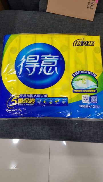 物品名稱:得意抽取式衛生紙(100抽×12包入)