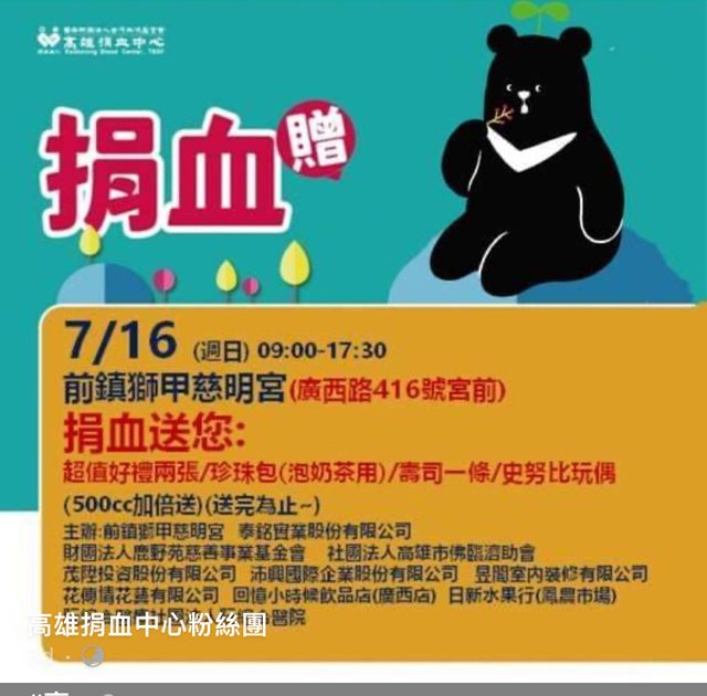 標題[閒聊] 7/16前鎮慈明宮捐血送全聯200/400