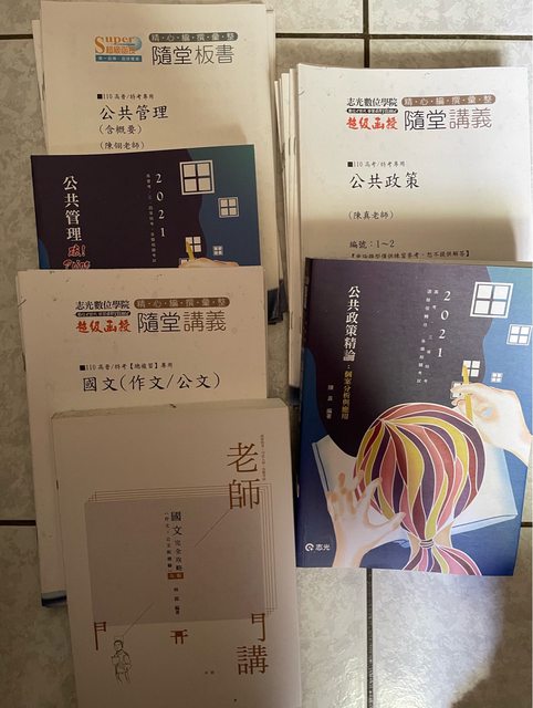 物品名稱:行政學、行政法、公共管理、公共政策、國文,考試用書和相關的一堆講義跟