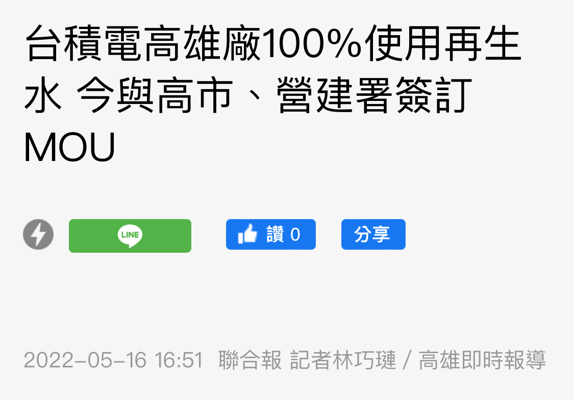 推 aweara : 台積電用自己循環水 橋頭再生水廠 會給台積電補水 07/17 16:05