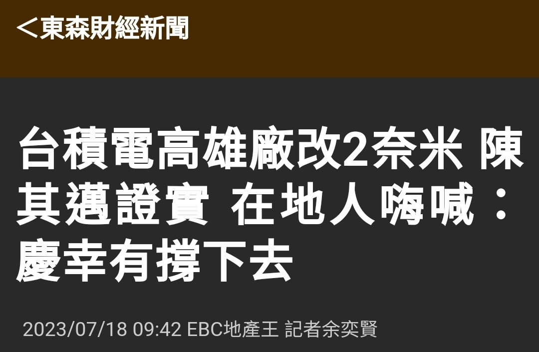 推 crystal0504 : 不管怎麼,邁邁都跳針2奈米會來高雄07/20 15:08