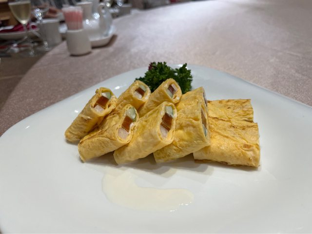 使用黃金蛋皮包裹蘿蔔, 小黃瓜還有烏魚子,