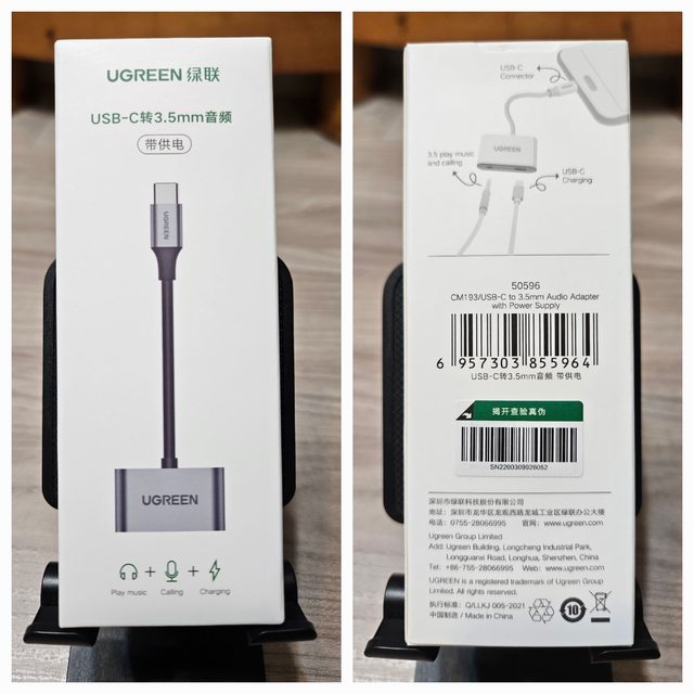 近全新,只打開來試用,可同時接3.5 mm耳機和type c充電線,但我的三星S23手機不能用
