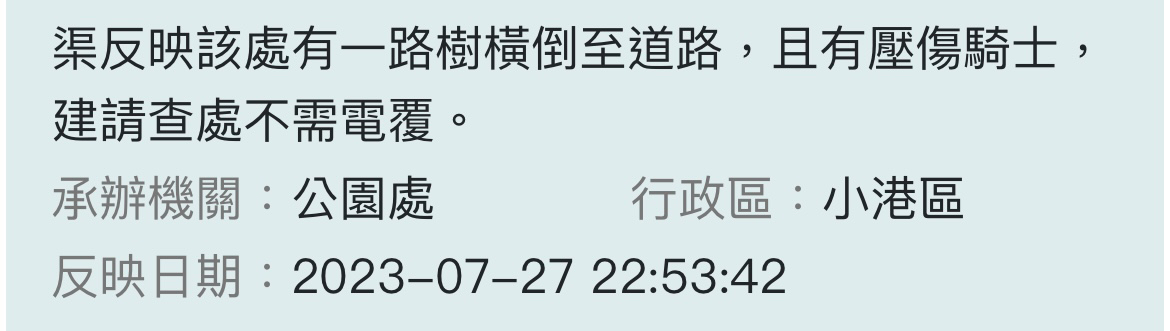 → Feriohan : 好幾年沒颱風來,養工修剪路樹沒以往頻繁,會倒正 07/27 23:16