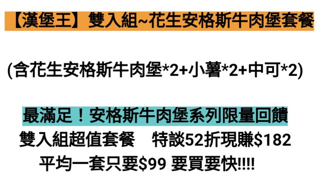 內容物是花生安格斯牛肉堡+小薯+中可