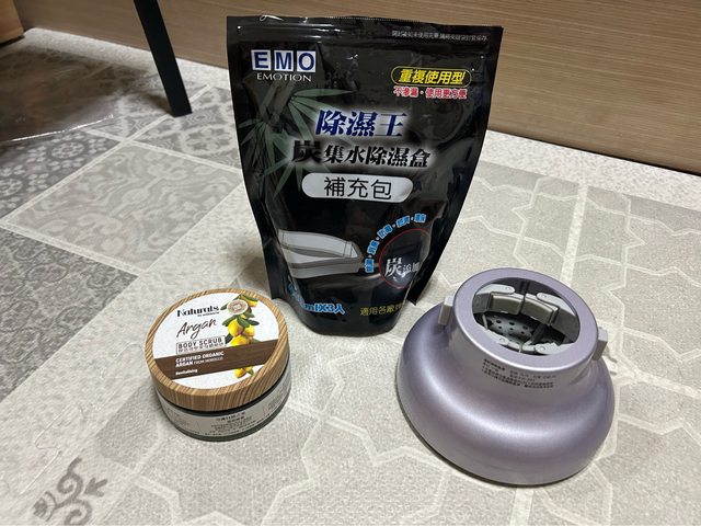 1.物品名稱:瑜珈墊、達欣牌熱烘罩、摩洛哥堅果身體磨砂膏、除濕盒補充包、巧拼地墊