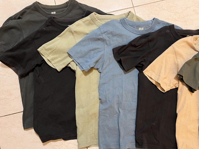 物品名稱:男生Uniqlo S號T-shirt 7件、襯衫5件( 因不喜歡這批的T shirt 材質,故全面汰換 ,有兩件的內裡有曬過太陽的褪色痕跡)