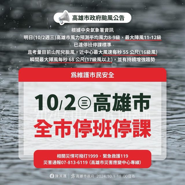 推 skyhelp : 高雄可能直接連假6天了 不要不信 10/01 18:44