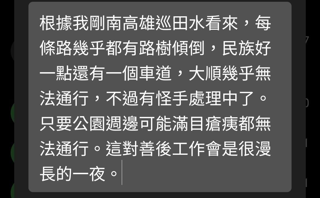 推 birdegging : 我走仁武台一線回三民區整路都是倒樹 10/04 00:46