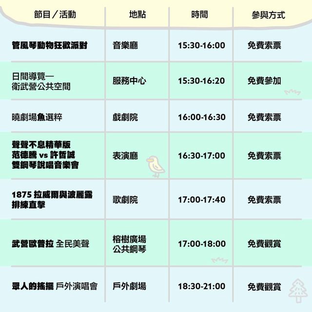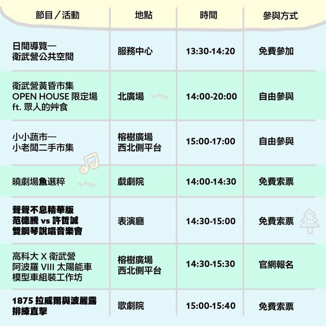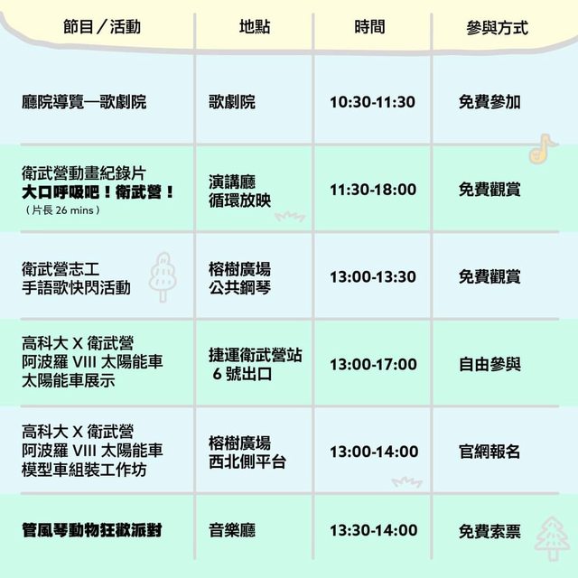 2024 衛武營 雙十活動 OPEN HOUSE 全日活動時間表