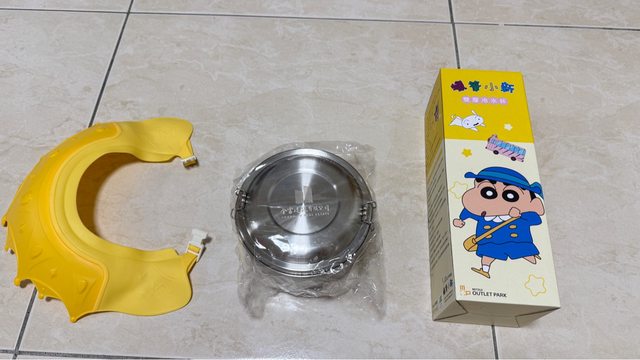 7.蠟筆小新冷水壺(全新)、304便當盒(全新)、寶寶洗頭帽(二手)