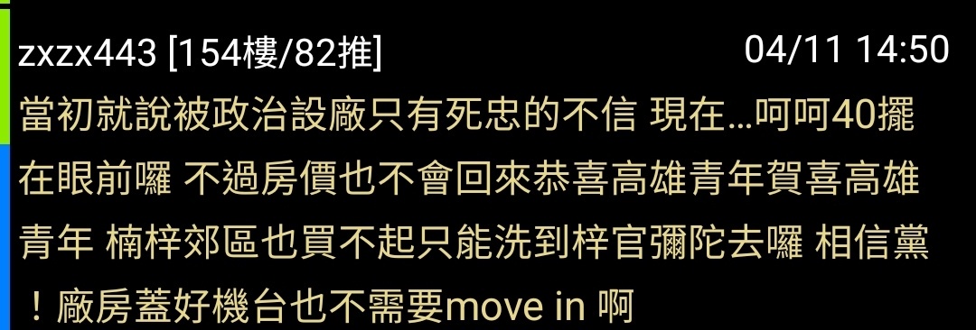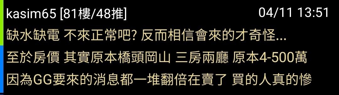 推 chen628 : 崩潰仔沒有輸,換成炒房就又贏了 10/18 08:09