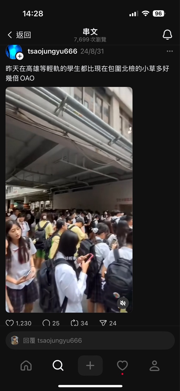 → m770613 : 海音,是搭輕軌還是搭台鐵?雄工、樹德家商的學生搭10/22 14:33