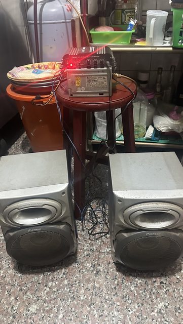 家裡清出了一些電子材料,喇叭音箱、擴大器和顯示幕有斷字的血壓計(功能正常),可當