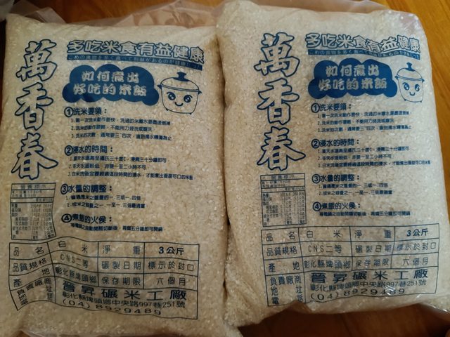 物品狀況:全新 10/15製造的白米 一包三公斤 共兩包