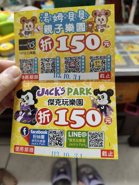 物品名稱:10/31到期的湯姆貝貝傑克玩樂園抵用券150元