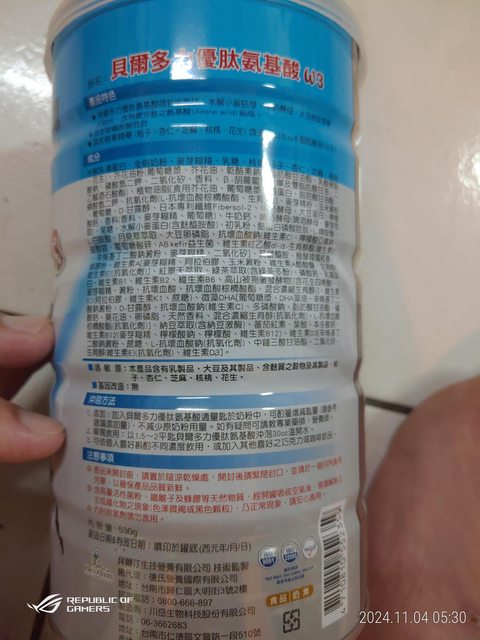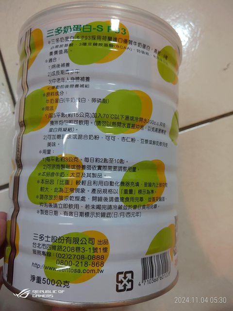 1:物品名稱:三多奶蛋白