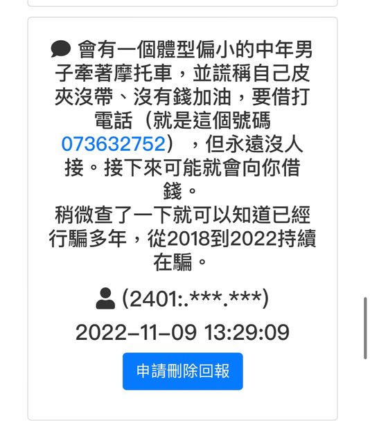 → sintsu : 未深借他五百,一查才發現滿滿的相關案例都是套路 11/06 11:28